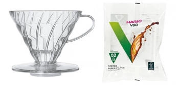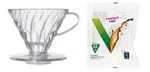 Plastikowy Drip Hario V60-02 - Clear + Filtry papierowe do dripa Hario V60-02 100szt